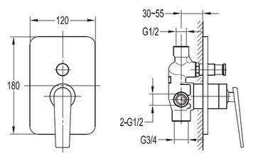 Встраиваемый двухпозиционный смеситель для ванны и душа CEZARES BADEN-F-VDIM-01 BADEN-F-VDIM-01