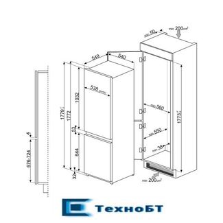 Современный двухкамерный холодильник с нижним расположением морозильной камеры и общим полезным объемом 280 л. В холодильном отделении установлены 4 регулируемые и 1 фиксированная полка из закалённого стекла, а также два прозрачных ящика для овощей и фруктов. На дверце располагаются три полки с металлической окантовкой, одна из которых предназначена для хранения бутылок, а также 1 полка с прозрачной крышкой и лоток для яиц.Холодильник предназначен для встраивания в нишу шириной 56 см (ширина самого аппарата 54 см). Для крепления фасадов предназначены скользящие направляющие. Дверцы можно перевешивать, петли расположены справа.В холодильнике предусмотрен электронный контроль температуры, а также установлен встроенный вентилятор. Если дверца холодильного отделения длительное время открыта, срабатывает система сигнализации, а на панели управления загорается индикатор. После того, как дверь будет закрыта, звуковой сигнал выключается. Отключить его можно и вручную.Система No Frost, избавляющая от необходимости частого размораживания, работает в морозильном отделении. В холодильной камере действует капельная система охлаждения. При отключении электроэнергии холодильник может поддерживать заданный уровень температуры в течение 20 часов. При закладке большой партии свежих продуктов в морозильную камеру рекомендуется использовать функцию суперзаморозки. None Возможен самовывоз. Есть доставка.