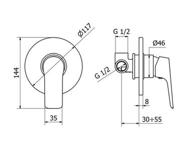 Управление: рычажное Материал: латунь Исполнение: хром Длина излива: излив отсутствует Механизм: керамический картридж Отверстия для монтажа: 1 отверстие Тип подводки: внутренний (скрытый) монтаж 1/2" Оснащение: скрытая монтажная часть Диаметр розетки: 11,7 см Гарантия: 5 лет с даты продажи (за исключением резиновых уплотнителей, шлангов, переключателей)