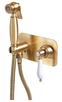 Материал: латунь Исполнение: хром, бронза, золото 24 карат Тип подводки: 1/2" Оснащение: гигиенический душ, смеситель, шланг для душа, шланговое подключение, держатель душа Рабочий интервал давления в водопроводной сети: 0,5-6,0 Атм Гарантия: 5 лет с даты продажи (за исключением резиновых уплотнителей, шлангов, переключателей)