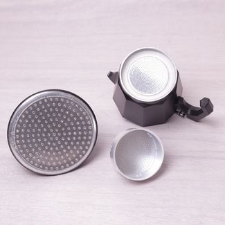 Наполните нижнюю емкость водой, поместите сверху емкость-фильтр и наполните ее молотым кофе, не утрамбовывая его.