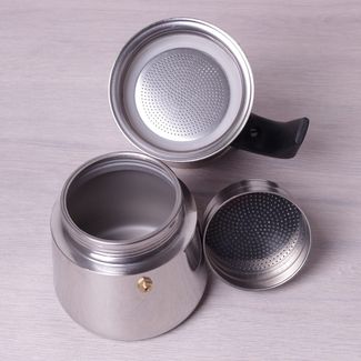 Наполните нижнюю емкость водой, поместите сверху емкость-фильтр и наполните ее молотым кофе, не утрамбовывая его. Оденьте верхнюю секцию и прокрутите для закрытия. Убедитесь, что фильтр и силиконовое кольцо на месте и плотно прилегают друг к другу. Обратите внимание, что очень важно обеспечить таким образом полную герметичность. При приготовлении кофе уровень нагревания должен быть низким! Когда кофе перестанет поступать в верхнюю емкость, кофеварку необходимо убрать с нагревающей поверхности. Ароматный горячий кофе готов.