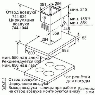 Максимальная производительность на интенсивной ступени: 754 м3/ч Максимальная производительность 438 м3/ч согласно DIN/EN 61591 Уровень шума на 1 / 3 ступени мощности: 45 / 57 дБ Сенсорное управление TouchControl 3 ступени мощности + интенсивный режим Размеры (отвод воздуха) (ВхШхГ): 744-924 x 898 x 600 мм Размеры (циркуляция) (ВхШхГ): 744-1044 x 898 x 600 мм Мощность подключения: 256 Вт None Возможен самовывоз.