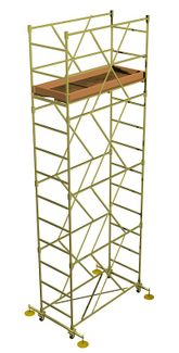 Вышка-тура из стали УЛТ-60 высотой 2,6 м из облегченного профиля 25*25. Откидные опоры обеспечивают повышенную устойчивость. Колеса со стоперами обеспечивают удобство перемещения конструкции