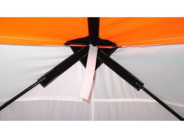 Палатка рыбака Пингвин Мr. Fisher 170 обладает уникальным набором характеристик, позволяющим говорить о том, что и в эконом-классе есть возможность получить премиум-эффект.1. В первую очередь это специальная ткань для палаток Oxford Tent, высокая плотность плетения, пропитка PU 2000.2. Каркас из композитного материала и хаб из алюминиевого сплава.3. Дышащая вставка на боковой грани, данное расположение призвано исключить забивание снегом материала.4. Нашивки из широкой светоотражающей ленты обеспечат безопасность на льду.5. Два двухсторонних бегунка на молнии №10, большие и мощные слайдеры на специальной морозоустойчивой молнии.6. Вентиляционный рукав-клапан с утягивающей клипсой.7. Восемь оттяжек для крепления палатки – 4 на хабах и 4 на полу.8. Два вместительных кармана.9. Встроенный пол! Пол из оксфорда с складкой-клапаном посередине, позволяет удалять шугу из лунок, при просушке можно вывернуть наизнанку.10. Проверенное временем и тысячами рыболовов качество изготовления фабрики Пингвин. За счет чего же достигнута экономия :1. Убрана ветрозащитная юбка ( при наличии вшитого пола ее необходимость сомнительна, а вспомнив как она примерзает…..)2. Отсутствует чехол для палатки ( палатка упакована в полипропиленовый рукав, вы сами можете выбрать: поездить без чехла или купить чехол отдельно.3. Ликвидированы окна ( вентиляция осуществляется снизу приоткрыв бегунок или через складку-клапан в полу, вверху – через рукав-клапан)4. Исключены предметы роскоши: рым-гайка в потолке, потолочная карман-сетка, многочисленные карманы.5. Композитный пруток используемый для каркаса ниже по стоимости прутка из сплава В95Т1, который идет на «старшей» серии. НА ЧЕМ МЫ НЕ ЭКОНОМИЛИ!На надежности !!! (материал тента, материал хаба, материал лучей)На безопасности !!! (дышащая вставка, светоотражательные полосы, вентиляция)На необходимости !!! ( палатка+пол+гарантия = самая привлекательная ценаИнструкция по установке:1.Вынуть укрытие из чехла (если имеется).2.При сильном ветре, в п