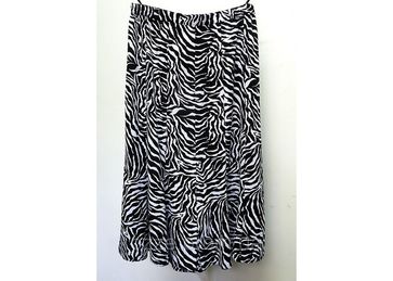 Классическая женская юбка. Производство Украина. Ткань - вискоза (вискоза 80%, полиэстер 20%.). Размеры 44 - 62.Женские юбки летние купить оптом Предлагаем модель из вискозы. Вискозу можно назвать самым «натуральным» искусственным волокном, потому что она представляет собой восстановленную целлюлозу. Свойства чистой вискозы больше всего напоминают свойства хлопка. Ткань приятна на ощупь, гигроскопична и воздухопроницаема. Вискоза не накапливает статического электричества и, следовательно, не электризуется. Ткань из вискозы на ощупь мягкая и приятная. Она образует красивые складки. Вискоза отличается ярким привлекательным «шёлковым» блеском, если в ней не содержатся матирующие добавки. Вискозу также отличает крайне высокая гигроскопичность. Вискоза впитывает в два раза больше влаги, чем, например, хлопок. Основным достоинством этого материала может по праву считаться гигиеничность, поэтому вискозу используют даже при пошиве одежды для детей. В представленной модели состав ткани: вискоза 80%, полиэстер 20%. Юбка - годе модель №18 представлена в различных цветах. На фото показана расцветка черно-белая "Зебра". Спереди в центральном шве двойная встречная склада с разрезом. В боковых частях пояса - резинка. Сзади - застежка "молния". Длина юбки может отличаться от представленной в таблице на 3-5 см.