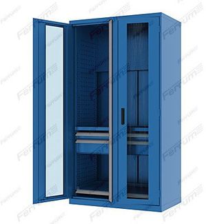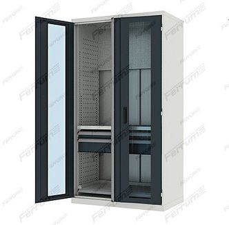Шкафы инструментальные предназначены для размещения и хранения инструмента, оснастки, комплектующих изделий, ручного электрического инструмента и рабочей документации на рабочем месте. Прочная конструкция из листовой стали способна выдерживать большие нагрузки на полки и выдвижные ящики, и обеспечивает хорошую устойчивость. Оснащены различными комбинациями полок и ящиков, что способствует оптимальной организации рабочего места с учетом специфики производства. Шкаф дополнительно можно оборудовать ящиками, полками и другими элементами для эргономичного размещения инструментов. Шаг перфорации на боковых стенках позволяет устанавливать полки под оснастку как в горизонтальном, так и наклонном виде. Возможно дополнительно укомплектовать шкаф элементами для верхней погрузки и погрузки роклой (вилочного погрузчика).