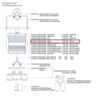 - DHR Верхняя часть DHR 55.99.04.09 для буксировочного навигационного огня DHR55N в каталоге Запасные части для средств связи в России;