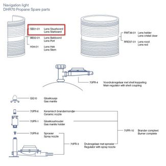 DHR Запасное стекло DHR SB31-01 для газового навигационного огня правый борт DHR70 Propane