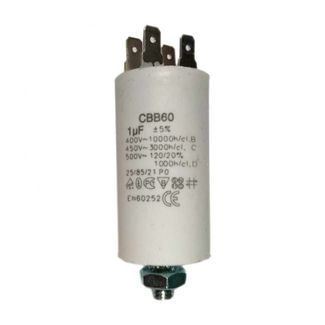Конденсатор пусковой СВВ60 Артикул: х60010 Емкость: 1 мкФ (uF)Напряжение: 450ВРазмер 57*30 мм4 контактаРезьба М8 с шайбой и гайкой.