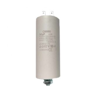 Артикул: х60300Пусковой конденсатор СВВ-60. Емкость: 30 мФ (uF). Напряжение: 450В. Размер 95*40 мм. Резьба М8 с шайбой и гайкой. 4 контакта. None