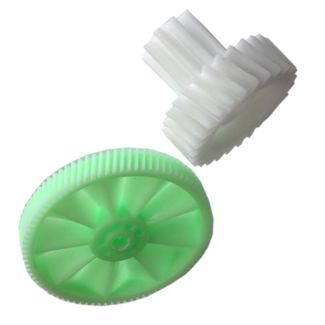 Артикул: h1002Блок шестерней MG350 для мясорубок Kenwood. Размеры большой шестерни: диаметры 83 и 20 мм; высота 19 и 12 мм; количество зубьев 9 и 85 шт. Размеры малого зубчатого колеса: диаметры 55 и 28 мм; высота 18 и 30 мм; число зубьев 10 и 27 шт. В комплекте - 2 шестеренки KW715563 и KW715564.