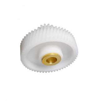 Артикул: H2004Шестеренка с медной втулкой. Артикул: h2004. Цвет: белый. Материал изготовления: пластик. D=45, H=35, d=18, d=12 мм. Подходит для мясорубок Elenberg, Panasonic. None