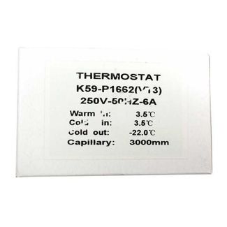 Термостат K-59-P1662 (VT3) Артикул X1049 Длина капиллярной трубки 3000 мм Диапазон температуры от −22℃ до 3,5℃cold on 3.5℃ cold off −22℃ norm on 3.5℃ norm off −12℃ Скидки с первой покупки! Можно купить без предварительного заказа. Возможен самовывоз. Есть доставка.