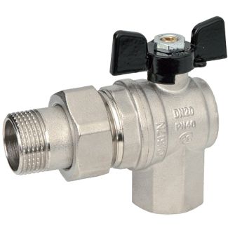 Шаровой кран угловой BUGATTI OREGON 594 1" с накидной гайкой, ручка-бабочка
