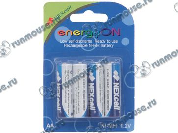Аккумулятор NEXcell "energyON" 1.2В 2000мАч Ni-MH AA, с пониженным саморазрядом (4шт. уп.) (ret) [70738]