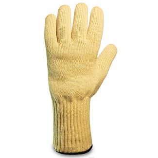 Промышленные защитные перчатки от ожогов из высокопрочной пара-арамидной нити (10 класс вязки) с хлопковым вкладышем, удлиненным манжетом и двойным оверлоком. Обеспечивают защиту рук от контактного тепла до 400 °С, механических повреждений и загрязнений. Обладают отличной воздухопроницаемостью. Высокая износостойкость и устойчивость к разрывам. Предназначены для комфортного и безопасного выполнения работ в металлургической и горнодобывающей промышленности, в машиностроительной отрасли и прочих сферах.