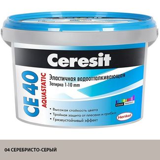 - ЦЕРЕЗИТ СЕ 40 затирка водооталкивающая №04 серебристо-серая (2кг) CERESIT CE-40 Aquastatic эластичная затирка водооталкивающая противогрибковая №04 серебристо-серая (2кг) по выгодной цене 359 р. руб.;