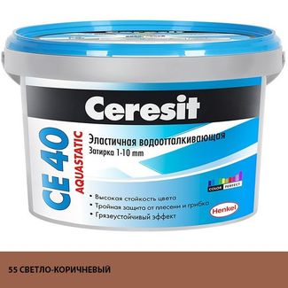 - ЦЕРЕЗИТ СЕ 40 затирка водооталкивающая №55 светло-коричневая (2кг) CERESIT CE-40 Aquastatic эластичная затирка водооталкивающая противогрибковая №55 светло-коричневая (2кг) по выгодной цене 399 р. руб.;
