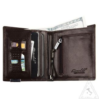 Зажим для денег Barkli 912042-5 из натуральной кожи. Цвет - коричневый. Внутри отделения для купюр и пластиковых карт. Карманы для SIM-карты и карты памяти. Карман для мелочи - на обратной стороне. None Возможен самовывоз.