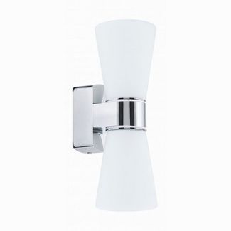 Бренд - Eglo (Австрия), Серия - Cailin, Ширина, мм - 90, Высота, мм - 270, Выступ, мм - 115, Размер упаковки, мм - 285x500x310, Количество плафонов - 2, Масса нетто, кг - 1,258, Общее кол-во ламп - 2, Лампы в комплекте - светодиодные [LED] G9, Лампы - светодиодная [LED], цоколь G9; 220 В; 2.5 Вт, цвет: белый теплый, 3000 K, Цвет плафонов и подвесок - белый, Цвет арматуры - хром, Тип поверхности плафонов и подвесок - матовый, Тип поверхности арматуры - глянцевый, Материал плафонов и подвесок - стекло, Материал арматуры - металл, Класс электробезопасности - II, Общая мощность, Вт - 5, Степень пылевлагозащиты, IP - 44, Стиль - модерн, Тип лампы - светодиодная [LED], Тип цоколя лампы - G9, Напряжение питания лампы, В - 220, Максимальная мощность лампы, Вт - 2.5, Цветовая температура, K - 3000 K, Тип колбы лампы - пальчиковая, Форма плафонов - конусная, Направление плафонов - вверх, вниз, Диапазон рабочих температур - комнатная температура, Размеры, мм - 90x270x115, Страна производителя - Австрия, Дополнительные параметры - способ крепления светильника к стене - на монтажной пластине, Гарантия, месяцы - 24 Работаем круглосуточно!Возврат 21 день. Страна производства: Австрия Есть доставка.