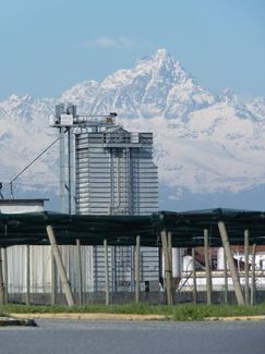 • Воздух с нижней части башни (воздух, поступающий после охлаждения, а также от теплогенератора и участвует в последней фазе высушивания), имеет низкий процент влажности и температуру 40°C - 60°C, всасывается и направляется для повторного нагрева и использования в сушке зерновых в верхней части сушильной башни.