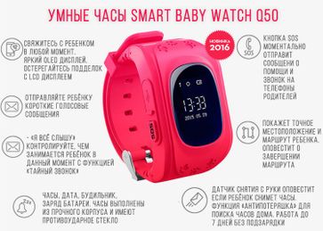 - Детские часы GPS трекер Smart Baby Watch Q50 - розовые по выгодной цене 2 495 р. руб.;