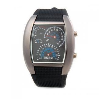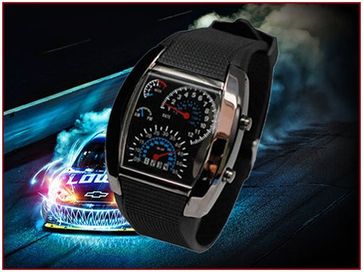 Аксессуар с настоящим мужским характером. Чем же уникальны Гоночные Часы со Спидометром? Конечно своим оригинальным циферблатом, который имитирует приборную панель авто. Здесь имеются и тахометр, показывающий часы, и спидометр, отсчитывающий минуты. Индикаторы слева подскажут владельцу день недели и отрезок суток (AM - PM). Приплюсуем к этому качественный водонепроницаеиый корпус и яркую неоновую LED подсветку и получим стильные, дерзкие своей неповторимостью наручные часы, которые обязательно должны быть в Вашей коллекции оригинальных аксессуаров!
