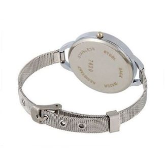 Пол: женский Тип дисплея: аналоговый Механизм: кварцевый Форма циферблата: круг Основной материал: стальной сплав Материал ремешка: сталь Материал задней крышки: сталь Плетение ремешка: кольчужное Цвет: серебристый Водонепроницаемый корпус: да Стрелки: часовая, минутная, секундная Застежка: пряжка Диаметр циферблата: 3,4 см Размер: 30х6х1 см Вес: 40 г