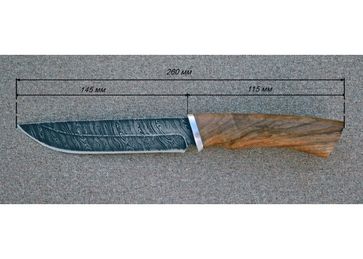Дамасская сталь, рукоять - орехТехнические характеристики:Общая длина: 265 ммДлина рукояти: 117 ммДлина клинка: 147 мм Ширина рукояти (в ср. части): 29 ммНаибольшая ширина клинка: 33 ммТолщина рукояти (в ср. части): 24 ммТолщина клинка: 4,0 мм None