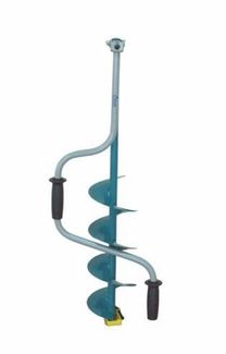 Основное и единственное отличие двуручных ледобуров от классических – верхняя рукоятка ледобура смещена относительно оси ледобура на 130 мм, а нижняя на 150 мм. Такое расположение рукояток позволяет вращать ледобур одновременно двумя руками, тем самым, увеличивая скорость бурения лунок во льду. Кроме того, существенно уменьшаются габариты ледобура в транспортном положении. По всем остальным характеристикам двуручные ледобуры полностью соответствуют классическим. Выпуск ледорубов с диаметром бурения 150 мм имеет целью перекрыть пустующую нишу в промежутке между диаметрами 130 и 180 мм. В тех случаях, когда необходим увеличенный диаметр лунки, а применение ледобура на 180 еще нецелесообразно, незаменимым инструментом рыболова станет стопятидесятый. Межцентровое расстояние креплений ножей увеличено для их большей жесткости и отличается от ледобуров других диаметров производства ЗАО ТОНАР плюс. None