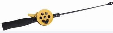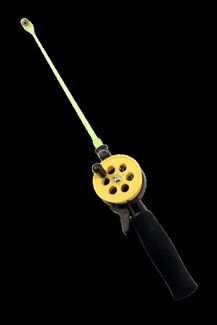 Зимняя удочка SWD с открытой катушкой диаметром 55 мм и клавишным стопором. Пластиковый хлыст длиной 20 см с тюльпаном на конце. Ручка из неопрена длиной 100 мм. None
