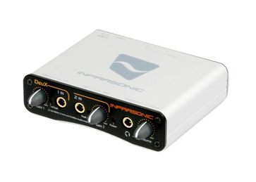 Звуковая плата INFRASONIC DEUX INFRASONIC DEUX — новый FireWire аудиоинтерфейс для качественной аудиозаписи по разумной цене. Одним из преимуществ данного интерфейса является компактный прочный алюминиевый корпус, защищающий устройство от повреждений в "полевых" условиях и на гастролях. INFRASONIC DEUX – профессиональный аудиоинтерфейс, который удовлетворяет современные требования пользователей в отношении функционала, стабильности работы, None