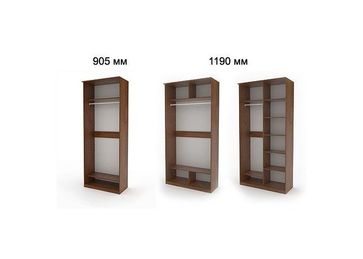 Стоимость шкафа зависит от его глубины (450 мм или 600 мм) и используемой профильной системы распашных дверей ("Modern ", "Classic" или "Без рамки"). Шкаф глубиной 450 мм комплектуется выдвижной штангой для одежды, шкаф глубиной 600 мм комплектуется продольной штангой для одежды. Базовая стоимость шкафа в зависимости от параметров "Classic" 905 х 450 х 2400(2200) - 7990 руб.905 х 600 х 2400(2200) - 8968 руб.1190 х 450 х 2400(2200)/1секц - 9378 руб.1190 х 600 х 2400(2200)/1секц - 10320 руб.1190 х 450 х 2400(2200)/2секц - 9851 руб.1190 х 600 х 2400(2200)/2секц - 11161 руб. Базовая стоимость шкафа в зависимости от параметров "Modern" 905 х 450 х 2400(2200) - 10037 руб.905 х 600 х 2400(2200) - 11014 руб.1190 х 450 х 2400(2200)/1секц - 11629 руб.1190 х 600 х 2400(2200)/1секц - 12571 руб.1190 х 450 х 2400(2200)/2секц - 12101 руб.1190 х 600 х 2400(2200)/2секц - 13412 руб. Базовая стоимость шкафа в зависимости от параметров "Без рамки" 905 х 450 х 2400(2200) - 6014 руб.905 х 600 х 2400(2200) - 6972 руб.1190 х 450 х 2400(2200)/1секц - 7383 руб.1190 х 600 х 2400(2200)/1секц - 8325 руб.1190 х 450 х 2400(2200)/2секц - 7855 руб.1190 х 600 х 2400(2200)/2секц - 9167 руб. При наличии в шкафу дополнительных элементов стоимость каждого элемента прибавляется к базовой стоимости шкафа:Зеркальная дверь для шкафа " Modern " - 1400 р.Зеркальная дверь для шкафа "Classic" - 1400 р. Подсветка (1 светильник) - 659 р.Подсветка (2 светильника) - 773 р. Блок ящиков (для шкафа глубиной 600 мм) - 1300р.