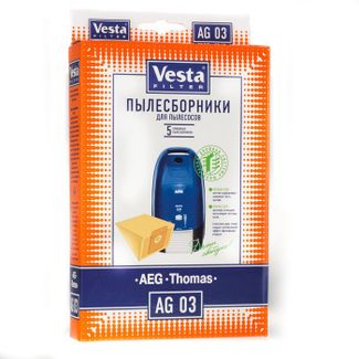 Пылесборники VESTA FILTER AG 03 из экологически чистой бумаги для пылесосов AEG VAMPYR обеспечивают необходимую защиту вашего пылесоса. Бумажные пылесборники VESTA FILTER AG 03 задерживают более 99 % пыли благодаря двухслойной бумаге. Первый слой мягкий , задерживает основную часть мусора. Второй слой поглощает мельчайшие частицы. Сочетание двух слоёв создает оптимальную систему фильтрации и гарантирует чистый воздух в вашем доме. В комплектацию упаковки входит 5 бумажных пылесборников. None Есть доставка.