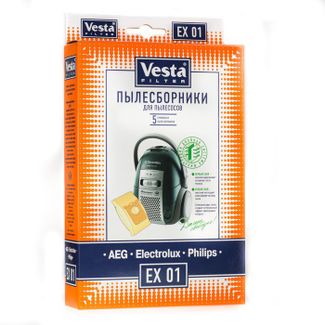 Бумажные фильтр-мешки VESTA FILTER EX 01 для пылесосов ELECTROLUX, PHILIPS (S-BAG). Фильтр-мешок VESTA FILTER обладает фильтрующими качествами, задерживает 99 % пыли устраняя вредные бактерии благодаря двухслойной степени фильтрации и обеспечивает защиту Вашего пылесоса. В комплектацию входят 5 пылесборников из бумаги None Есть доставка.