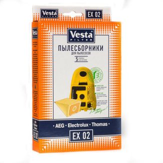 Пылесборники VESTA FILTER EX 02 из экологически чистой бумаги для пылесосов ELECTROLUX, ZANUSSI обеспечивают необходимую защиту вашего пылесоса. Бумажные пылесборники VESTA FILTER EX 02 задерживают более 99 % пыли благодаря двухслойной бумаге. Первый слой мягкий , задерживает основную часть мусора. Второй слой поглощает мельчайшие частицы. Сочетание двух слоёв создает оптимальную систему фильтрации и гарантирует чистый воздух в вашем доме. В комплектацию упаковки входит 5 бумажных пылесборников. None Есть доставка.