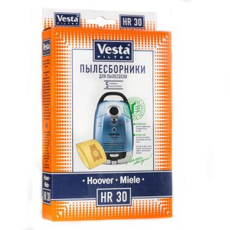 Мешки для пылесосов VESTA FILTER HR 30 из специальной двухслойной фильтровальной целлюлозы (бумаги) для пылесосов HOOVER, MIELE. Мешки-пылесборники VESTA FILTER HR 30 являются двухступенчатым фильтром из экологически чистой целлюлозы. Обеспечивают максимальную безопасность Вашего пылесоса и чистоту воздуха в помещении. В комплектацию упаковки входит 5 бумажных пылесборников. None Есть доставка.
