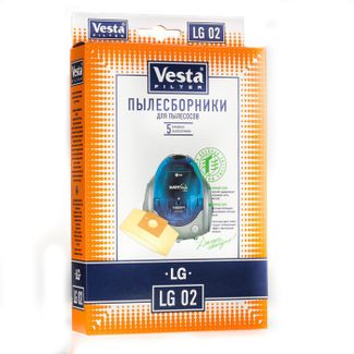 Мешки для пылесосов VESTA FILTER LG 02 из специальной двухслойной фильтровальной целлюлозы (бумаги) для пылесосов LG (STORM, TURBO) Мешки-пылесборники VESTA FILTER LG 02 являются двухступенчатым фильтром из экологически чистой целлюлозы. Обеспечивают максимальную безопасность Вашего пылесоса и чистоту воздуха в помещении. В комплектацию упаковки входит 5 бумажных пылесборников. None Есть доставка.