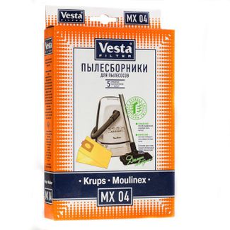 Мешки для пылесосов VESTA FILTER MX 04 из специальной двухслойной фильтровальной целлюлозы (бумаги) для пылесосов MOULINEX Мешки-пылесборники VESTA FILTER MX 04 являются двухступенчатым фильтром из экологически чистой целлюлозы. Обеспечивают максимальную безопасность Вашего пылесоса и чистоту воздуха в помещении. В комплектацию упаковки входит 5 бумажных пылесборников и 1 предмоторный фильтр. None Есть доставка.