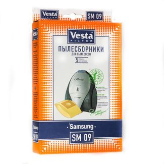Мешки для пылесосов VESTA FILTER SM 09 из специальной двухслойной фильтровальной целлюлозы (бумаги) для пылесосов SAMSUNG Мешки-пылесборники VESTA FILTER SM 09 являются двухступенчатым фильтром из экологически чистой целлюлозы. Обеспечивают максимальную безопасность Вашего пылесоса и чистоту воздуха в помещении. В комплектацию упаковки входит 5 бумажных пылесборников. None Есть доставка.