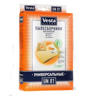 Мешки для пылесосов VESTA FILTER UN 01 из специальной двухслойной фильтровальной целлюлозы (бумаги) для пылесосов с мешком. Принцип использования - оторвать рамку от старого пылесборника, приклеить её на мешок из упаковки VESTA FILTER UN 01, который уже имеет клейкую основу. Мешки-пылесборники VESTA FILTER UN 01 являются двухступенчатым фильтром из экологически чистой целлюлозы. Обеспечивают максимальную безопасность Вашего пылесоса и чистоту воздуха в помещении. В комплектацию упаковки входит 4 бумажных пылесборника и 1 предмоторный фильтр. None Есть доставка.