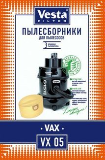 Бумажные фильтр-мешки VESTA FILTER VX 05 для пылесосов VAX. Фильтр-мешок VESTA FILTER обладает фильтрующими качествами, задерживает 99 % пыли устраняя вредные бактерии благодаря двухслойной степени фильтрации и обеспечивает защиту Вашего пылесоса. В комплектацию входят 3 пылесборника из бумаги. None Есть доставка.