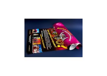 Плакат (нем. Plakat от фр. placard — объявление, афиша, от plaquer — налепить, приклеивать) — броское, как правило крупноформатное, изображение, сопровожденное кратким текстом, сделанное в агитационных, рекламных, информационных или учебных целях. (В другом значении — разновидность графики). В современном дизайне плакат воспринимается как «сведенное в четкую визуальную формулу сообщение, предназначенное современнику для выводов и конкретных действий». Данная формула отражает определенный уровень графического дизайна и информирует о предмете коммуникации . К особенностям жанра можно отнести следующее: плакат должен быть виден на расстоянии, быть понятным и хорошо восприниматься зрителем. В плакате часто используется художественная метафора, разномасштабные фигуры, изображение событий, происходящих в разное время и в разных местах, контурное обозначение предметов. Для текста важным является шрифт, расположение, цвет. В плакатах используется также фотография в сочетании с рисунком и с живописью. Обычно печать плакатов производится с одной стороны. Если плакат должен прослужить длительный срок, его можно защитить лаком или пленкой (заламинировать). Виды плакатной продукции – это афиша, собственно плакаты и постеры. Афиши несут информацию в массы, о мероприятиях. В ее производстве используется тонкая бумага и 3-4 краски. Плакаты постеры используются в средствах массовой информации ,рекламных компаниях, как пример рекламные щиты. Плакат как правило более красочный и возможно многократное использование. Печать плакатов бывает трех видов: цифровая, офсетная и плоттерная. Офсетная печать Офсетная печать – это самый распространенный вариант печати, в которой используются матрицы разных размеров , матрицы позволяют печатать рулоны и отдельные листы. Возможна очень разнообразная цветовая политра. Для печати А1 формата и большого количества экзе