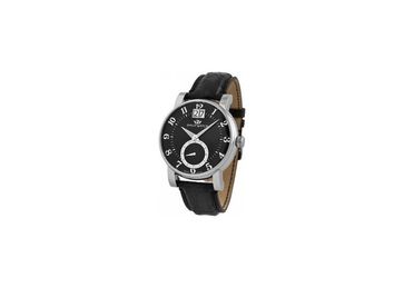 Общие характеристики Тип кварцевые, мужские Способ отображения времени аналоговый (стрелки), формат 12 часов Цифры арабские Конструкция Материал корпуса нерж. сталь Материал браслета/ремешка кожа Стекло минеральное Особенности Отображение даты число Подсветка стрелок None