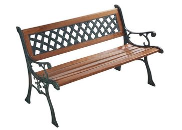 Скамейка из чугунного литья, покрытого краской под патину и дерева Кемпас из Юго Восточной Азии, покрытого лаком.