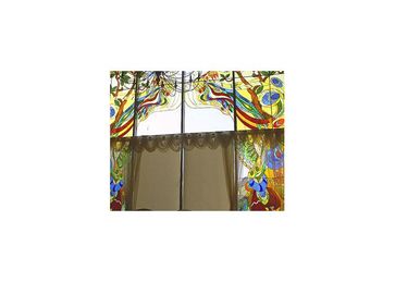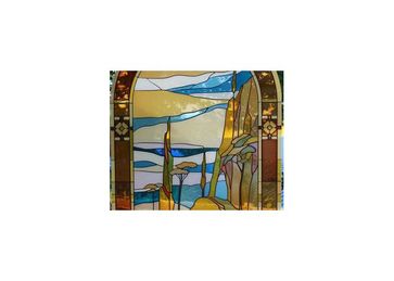 Студия элитного стеклаВитражи.ру представляет технику витража "НАЛИВНЫЕ". На стекло необходимого размера наносится сверхпрочный контур из полимерных материалов , после этого образовавшиеся промежутки заливаются лаками различных цветов . После того , как контур и лаки застынут , на стекле образуется прочный слой , который уже не может быть удален . Современные технологии и оборудование позволяют нанести даже самый сложный контур , при этом цвет контура может быть практически любым - черным , золотым , серебристым или другим . Можно нанести даже бесцветный контур . Продукция изготавливается из эксклюзивных английских материалов с использованием высоких технологий . Смолы на акриловой основе демонстрируют прекрасные результаты по устойчивости к различным погодным условиям , тепловым воздействиям и ультрафиолетовому освещению . Необычайно широкая гамма цветов , от прозрачной до матовой текстуры , дают неограниченные возможности для творчества . Наша технология позволяет наносить контур и цветное изображение не только на стекло , но и на кафельную плитку , дверное полотно , потолочные панели , гибкий поликарбонат и другие материалы . Благодаря этому мы можем создавать разноцветные композиции на самых разных поверхностях , что значительно расширяет возможности использования витражей . Мы принимаем заказы на разные виды и размеры витража ( в двери , окна , шкафы купе, ниши , светильники или потолки с подсветкой , а также многое другое ) . Мы способны предложить Вам свои эскизы или исполнить вариант , предложенный Вами .