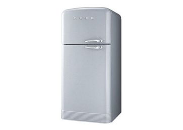 Отдельностоящие холодильно-морозильные комбинации "стиль 50-х годов",Отдельностоящий холодильник. Общий объем 400 л. Полезный объем холодильной камеры 310 л, объём морозильной камеры 76 л. Класс энергопотребления «А+», годовой расход электроэнергии 310 кВт/ч, размеры (В х Ш х Г): 187 х 70,5 х 74,2 см, цвет: серебристый. None