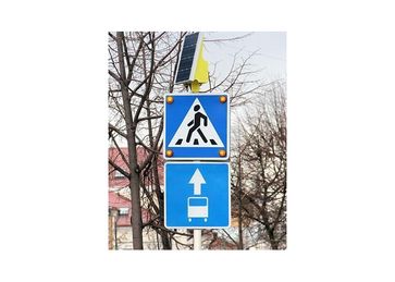Светодиодный дорожный знак на солнечных батареях представляет собой дорожный знак с мигающей индикацией на сверхярких светодиодах с автономным электропитанием от солнечной мини-электростанции. Конструкция имеет большой запас мощности солнечной батареи и емкости аккумулятора для устойчивой работы в неблагоприятных условиях высоких широт, малосолнечные и холодные периоды года. Светодиодные дорожные знаки имеют низкое энергопотребление, повышенный ресурс, устойчивы к агрессивной внешней среде, невосприимчивы к вибрации. Солнечная электростанция и светодиодный знак устанавливаются на стойку дорожного знака. Солнечная электростанция устанавливается на поворотном кронштейне на «ЮГ» и закрепляется. Исполнение – антивандальное.
