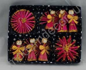 Новогоднее подвесное украшение из соломки (ангелы), 8см, (набор из 4 шт. в картонной коробке)